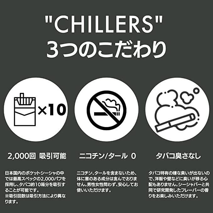シーシャBarと開発した最高スペック&本格フレーバーの"CHILLERS"は今までにない吸いごたえとキック感を実現。